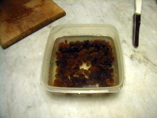 - mettere l'uvetta a bagno in una tazza di acqua calda per 15 minuti.