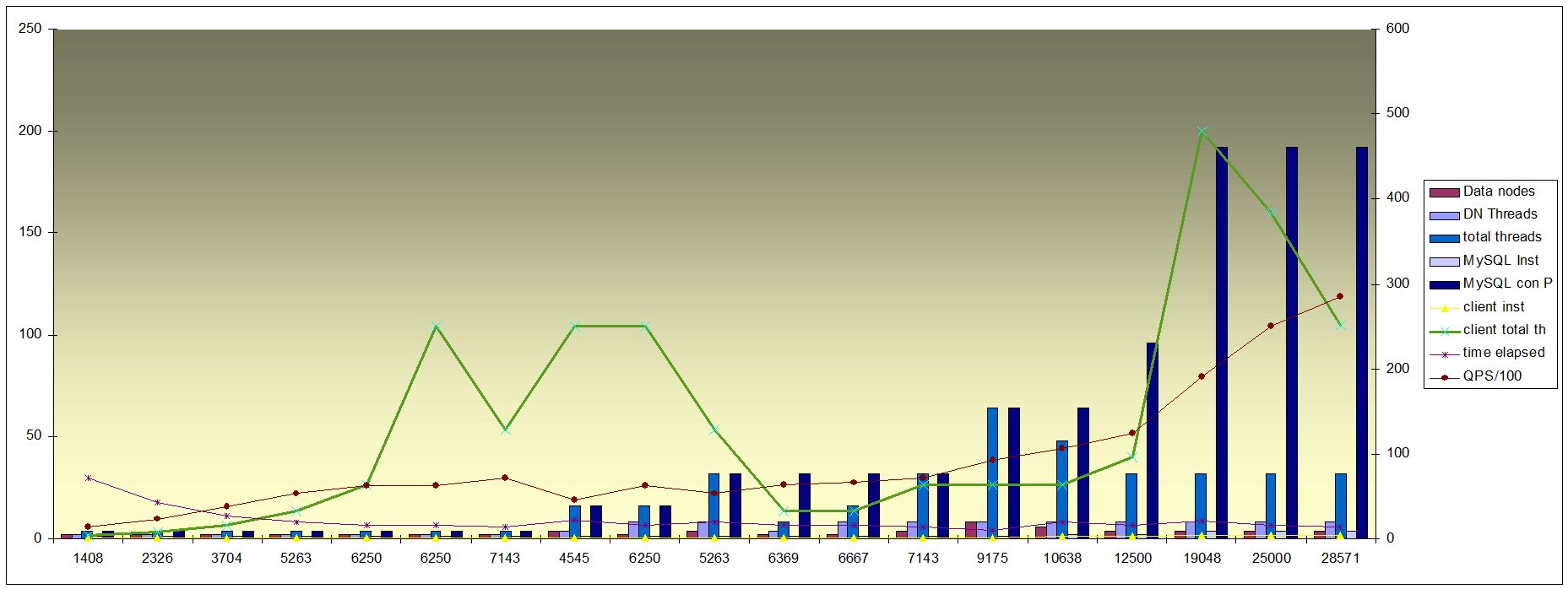 Again some few interesting results come up. I run it first against mysqld then against one data node proces (ndbmtd).
