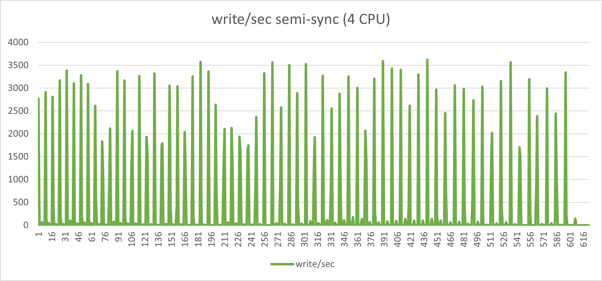 In the next graphs I will show you the behavior of writes/reads using Asynchronous replication and the same load with Semi-synchronous.