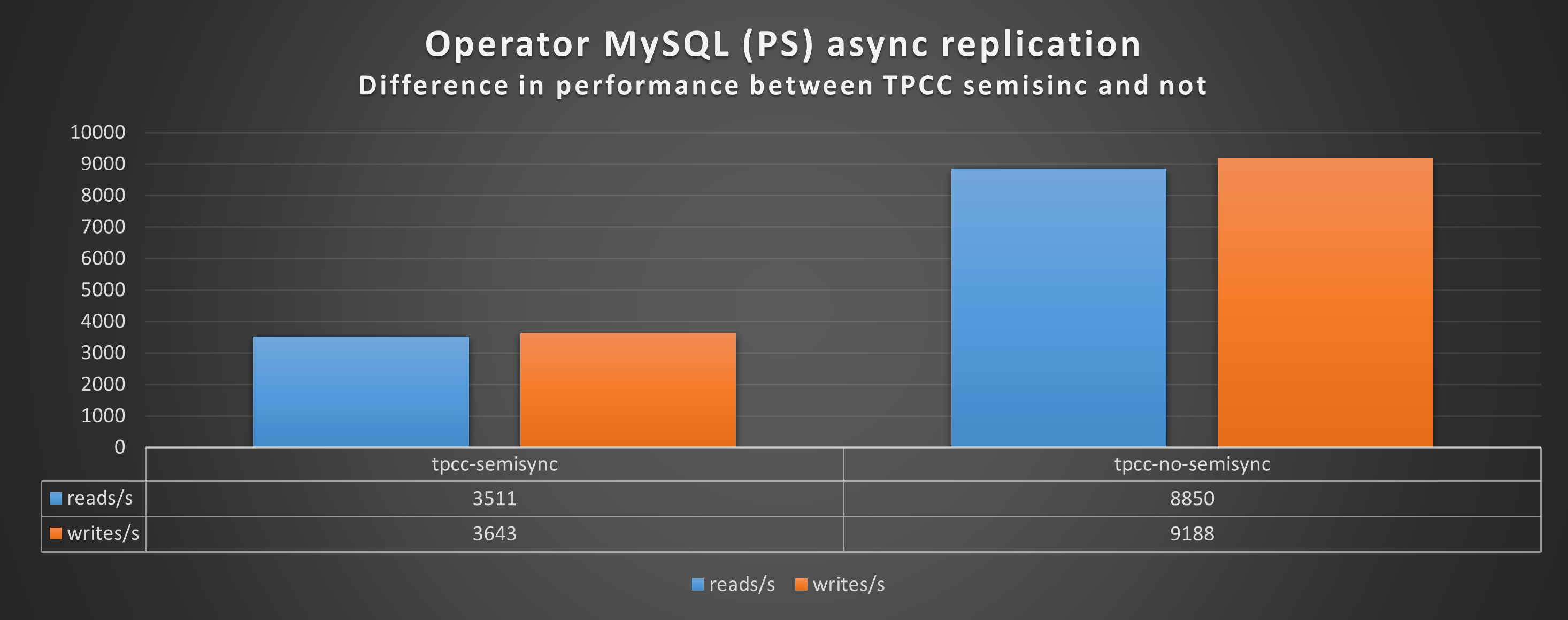First of all I want to say that the tests on our operator using Asynchronous replication, shows a consistent behavior with the standard deployments in the cloud or premises. It has the same benefits, like better performance and same possible issues as longer time to failover when it needs to wait a Replica to apply the relay-log queue.